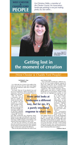 This past July I received a call from a writer at the WC Press, a local magazine for the West Chester area in Pennsylvania. They were putting together an article about a group of regional artists and wanted to know if I’d be interested. It took all of about 10 seconds to answer “Yes, I would be!”.